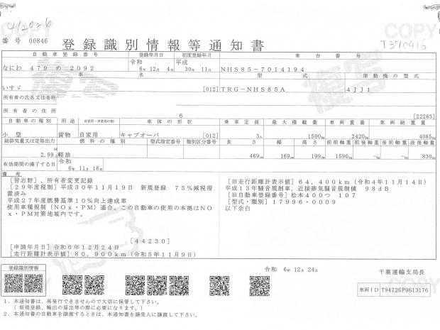 車台番号 | NHS85-7014194 | 馬力 | 150 PS | ||||||||||||||||||||||||||||||||||||||||||||