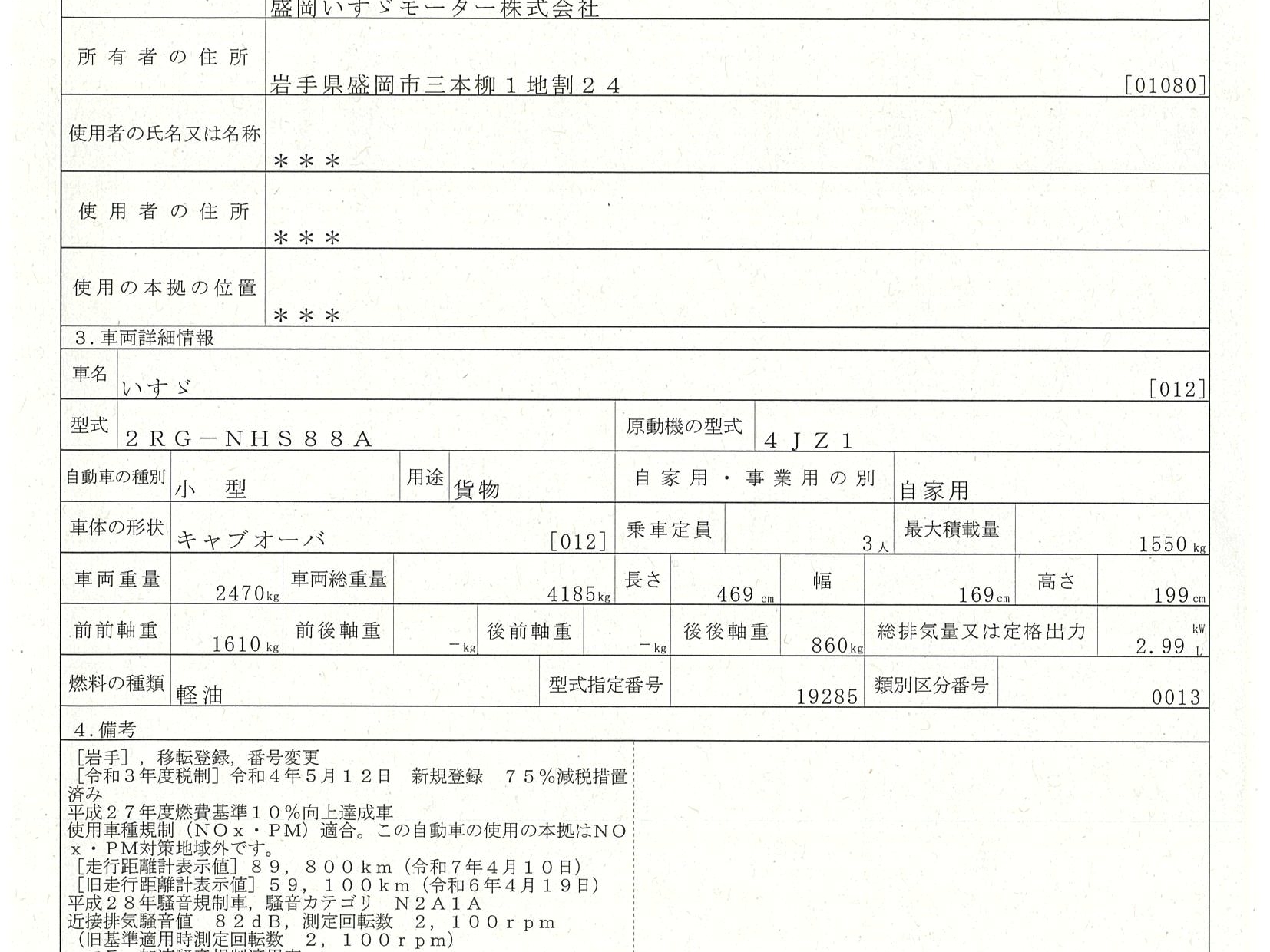 | 荷台高 | 380 mm | 初年度登録 | 令和 4年(2022年) | ||||||||||||||||||||||||||||||||||||||||||||