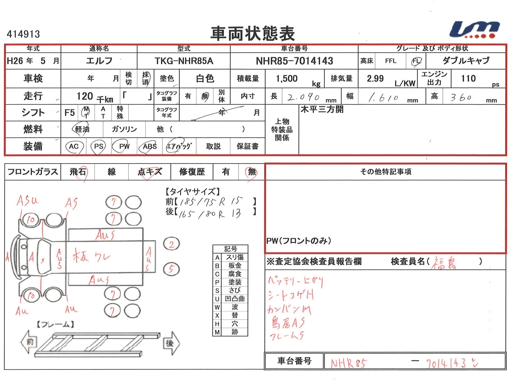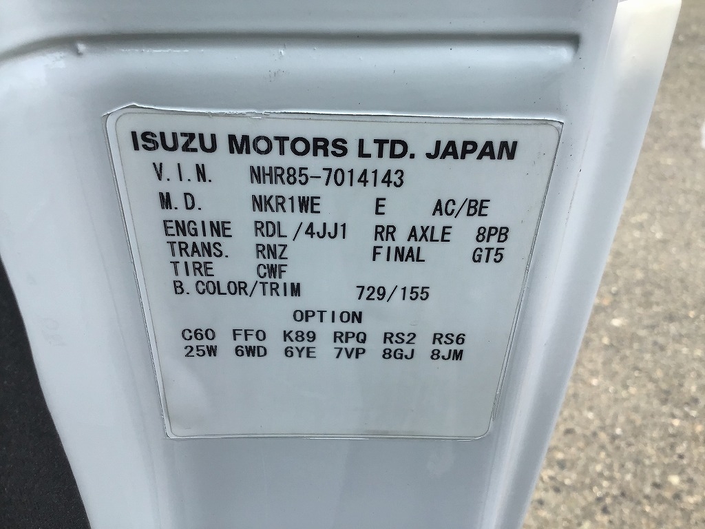 | 車台番号 | NHR85-7014143 | 馬力 | 110 PS | ||||||||||||||||||||||||||||||||||||||||||||