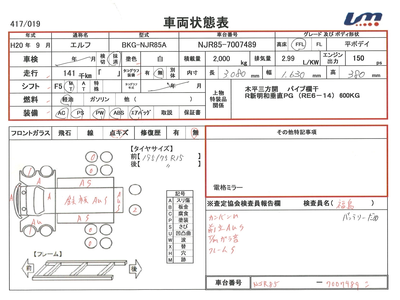 | 車両情報コメント | メーカー完成車 木平三方開 パイプ欄干 リア新明和垂直PG (RE6-14) 600KG 電格ミラー 看板跡 TMガラ音 前立て傷・凹み・錆 フレーム錆 積載量は抹消時情報になります。他写真多数有り、詳細はお問合せ下さい。【タイヤサイズ 195/75R15】 | ||||||||||||||||||||||||||||||||||||||||||||||