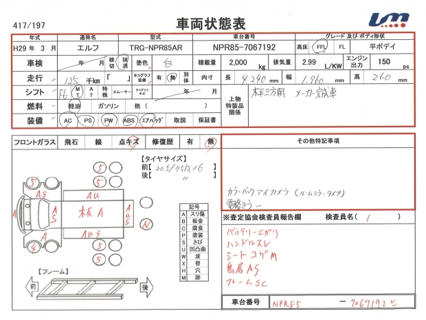 車台番号 | NPR85-7067192 | 馬力 | 150 PS | ||||||||||||||||||||||||||||||||||||||||||||