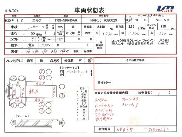 車台番号 | NPR85-7080029 | 馬力 | 150 PS | ||||||||||||||||||||||||||||||||||||||||||||