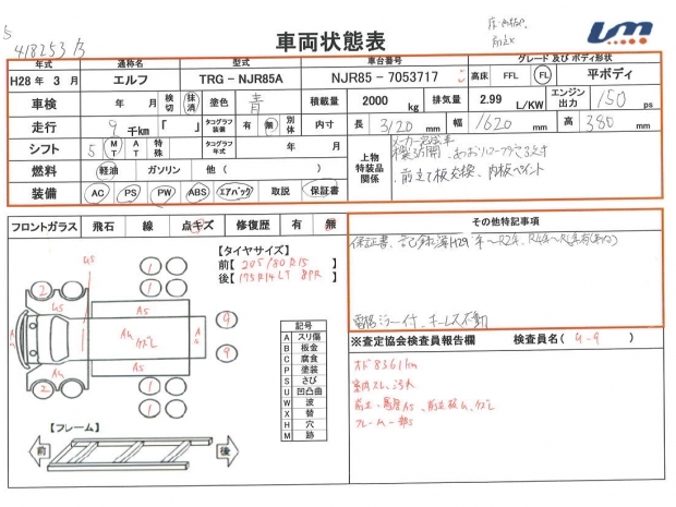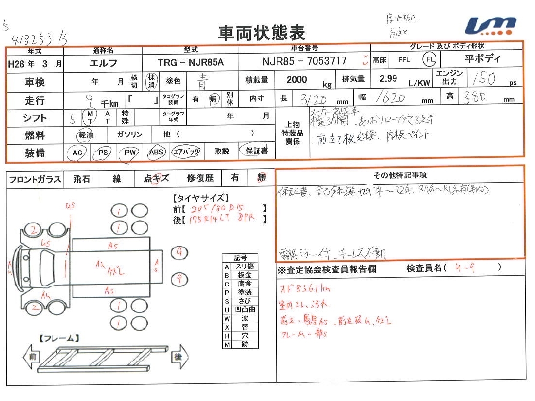 | 車台番号 | NJR85-7053717 | 馬力 | 150 PS | ||||||||||||||||||||||||||||||||||||||||||||