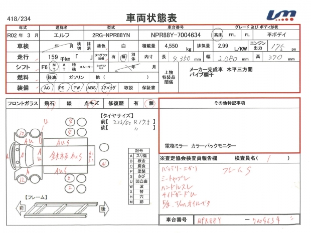 車台番号 | NPR88Y-7004634 | 馬力 | 175 PS | ||||||||||||||||||||||||||||||||||||||||||||