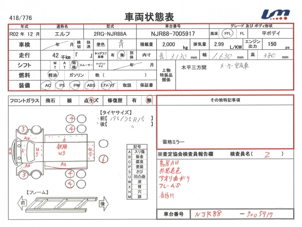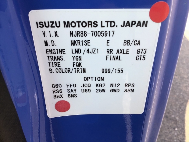 車台番号 NJR88-7005917 馬力 150 PS
