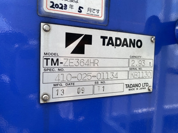 車両情報コメント | タダノ製 TM-ZE364HR型 2.93t吊 4段 ラジコン(事務局)フックイン 小平産業製 NO.B1309074 木製3方開 床埋込フック7対 取説・保証書・記録簿H27年~R6年有(車内)バックモニター オートクルーズ 電格ミラー キーレス ベッド付 積載量は抹消時情報になります。他写真多数有り、詳細はお問い合わせ下さい。【タイヤサイズ225/90R17.5】 |