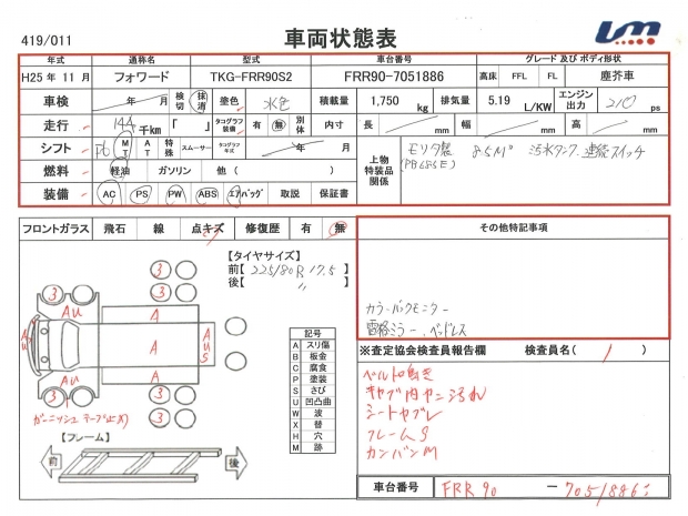 車台番号 | FRR90-7051886 | 馬力 | 210 PS | ||||||||||||||||||||||||||||||||||||||||||||