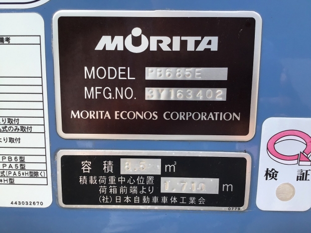 ボディ詳細 | プレス式、モリタ | ||||||||||||||||||||||||||||||||||||||||||||||