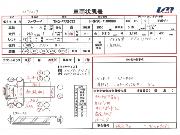 車台番号 | FRR90-7100986 | 馬力 | 210 PS | ||||||||||||||||||||||||||||||||||||||||||||