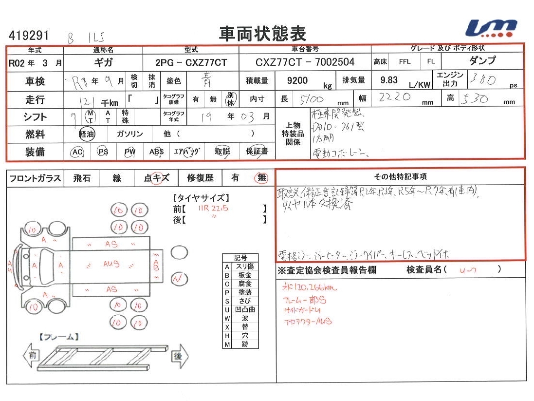 | ボディタイプ | ダンプ | 車両総重量 | 19,990 kg | ||||||||||||||||||||||||||||||||||||||||||||