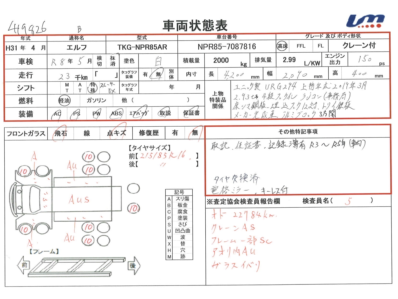ボディタイプ クレーン付き 車両総重量 6,295 kg