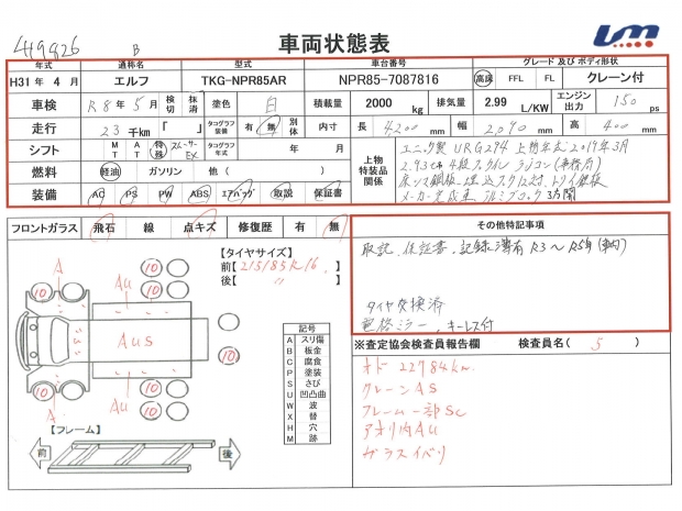 型式 TKG-NPR85AR エンジン排気量 2,990 cc