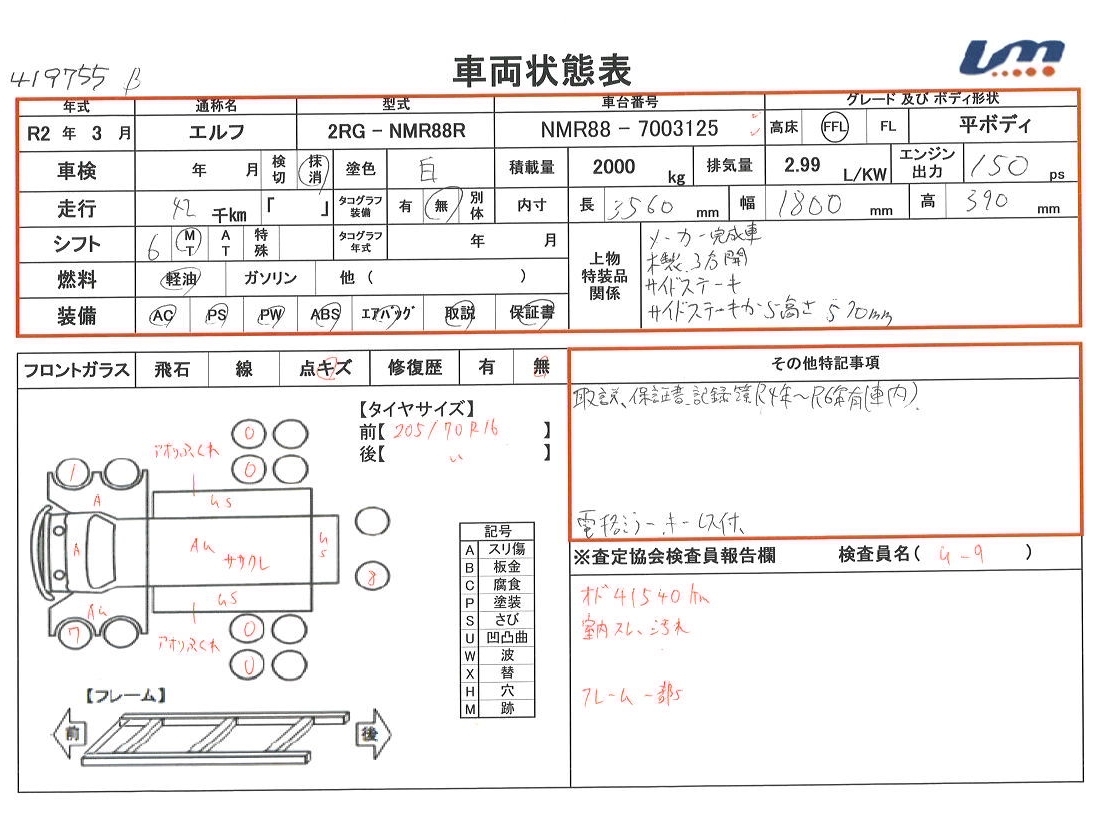 | ボディ内寸 | 荷台長 | 3,560 mm | 走行距離 | 42,000 km | |||||||||||||||||||||||||||||||||||||||||||