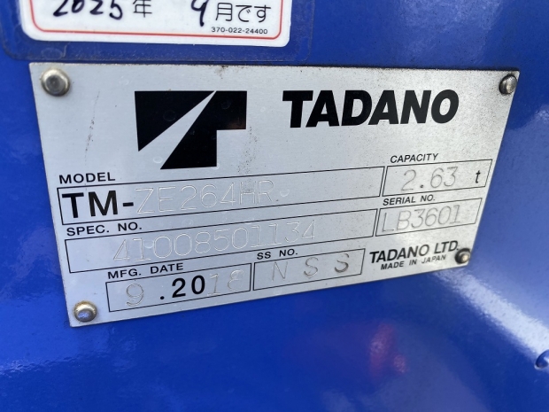 | 車両情報コメント | タダノ製 TM-ZE264HR型 2.63t 4段 ラジコン有(事務局) フックイン リヤアウトリガー 木製3方開 床鉄板張 埋込フック4対 引出フック4対 二重底 上物年式2018年9月 取説有(車内) 電格ミラー キーレス付 積載量は車検証情報になります。他写真多数有り、詳細はお問い合わせ下さい。【タイヤサイズ195/85R16】 | ||||||||||||||||||||||||||||||||||||||||||||||