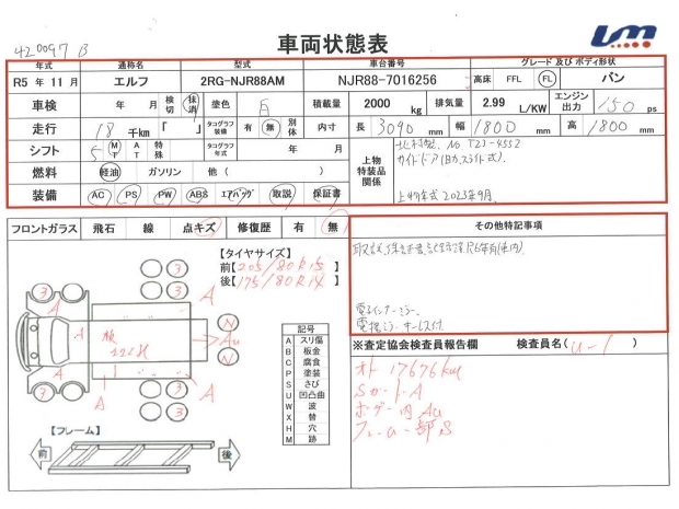 車台番号 NJR88-7016256 馬力 150 PS