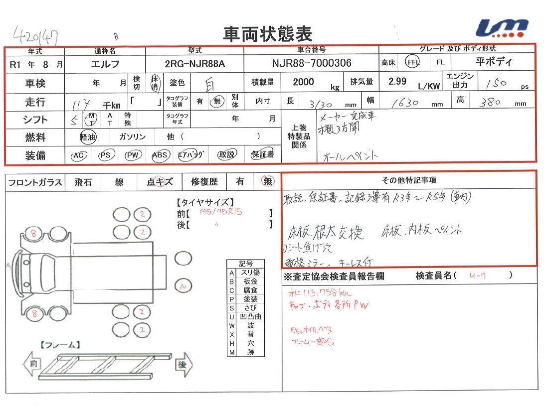 ボディ内寸 | 荷台長 | 3,130 mm | 走行距離 | 114,000 km | |||||||||||||||||||||||||||||||||||||||||||