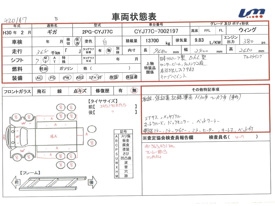 | ボディ詳細 | アルミウィング、日本フルハーフ | ||||||||||||||||||||||||||||||||||||||||||||||