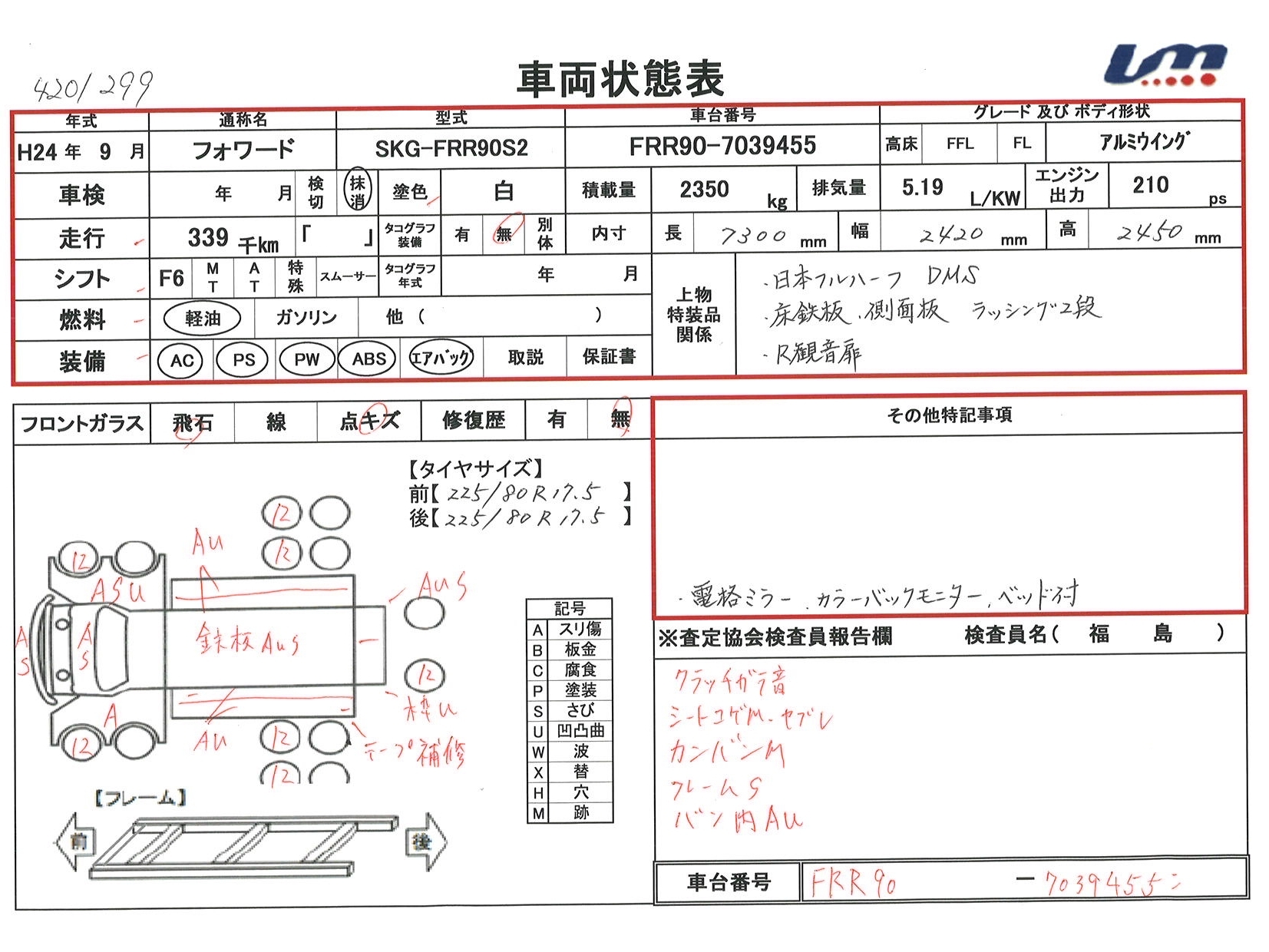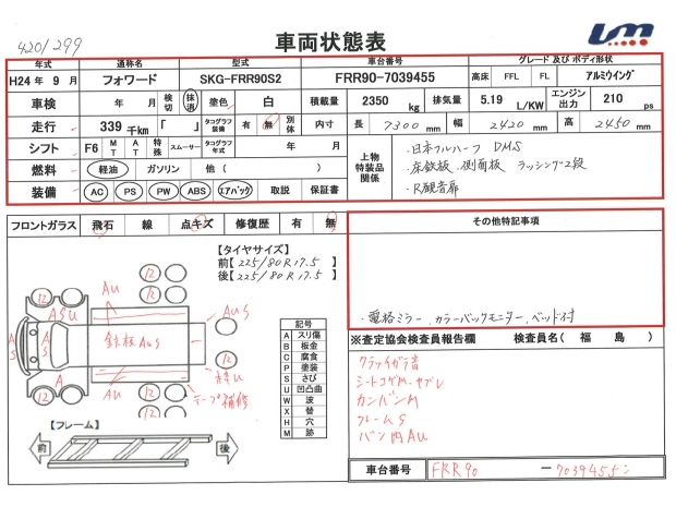 車台番号 | FRR90-7039455 | 馬力 | 210 PS | ||||||||||||||||||||||||||||||||||||||||||||