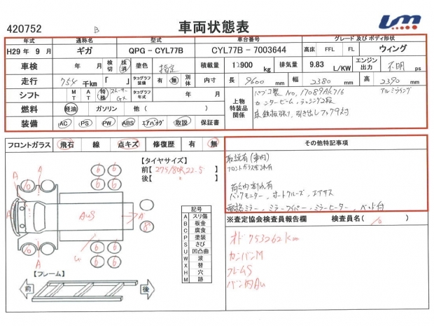 | ボディ内寸 | 荷台長 | 9,600 mm | 走行距離 | 754,000 km | |||||||||||||||||||||||||||||||||||||||||||