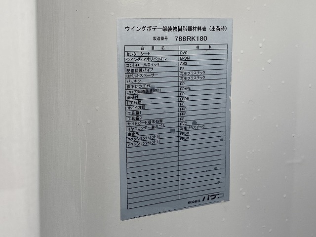 | ボディ詳細 | アルミウィング、パブコ | ||||||||||||||||||||||||||||||||||||||||||||||