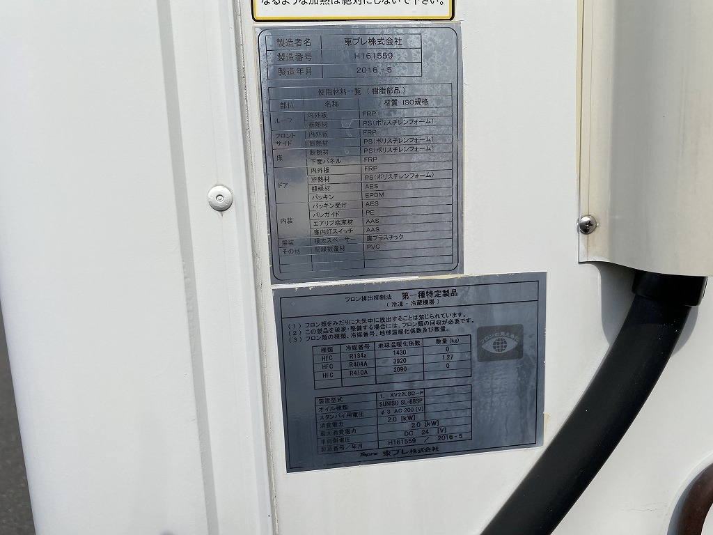 車両情報コメント | 東プレ製XV22LSC-P型 上物年式2016年5月 -30度設定 E/G始動時から1時間で前33度~1度 後34度~2度まで確認済み サイドドア(助スライド式) スタンバイ有(コード欠) 取説・保証書・記録簿R3年~R6年有(車内) シートコゲ穴 電格ミラー キーレス付 積載量は抹消時情報になります。他写真多数有り、詳細はお問い合わせ下さい。【タイヤサイズ 195/75R15】 |
