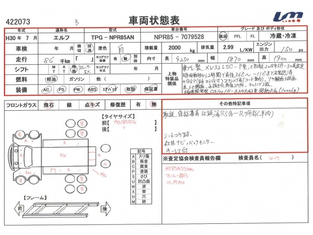 車台番号 | NPR85-7079528 | 馬力 | 150 PS | ||||||||||||||||||||||||||||||||||||||||||||