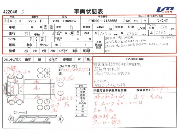 | 車台番号 | FRR90-7135668 | 馬力 | 210 PS | ||||||||||||||||||||||||||||||||||||||||||||