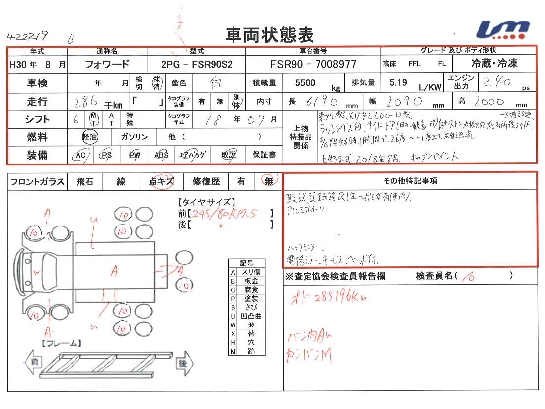 | 車台番号 | FSR90-7008977 | 馬力 | 240 PS | ||||||||||||||||||||||||||||||||||||||||||||