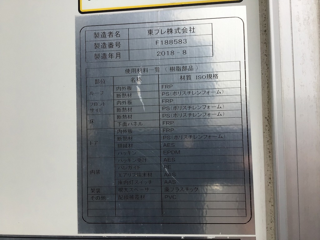 | ボディ詳細 | 観音式、低温、サイドドア(助)、東プレ | ||||||||||||||||||||||||||||||||||||||||||||||