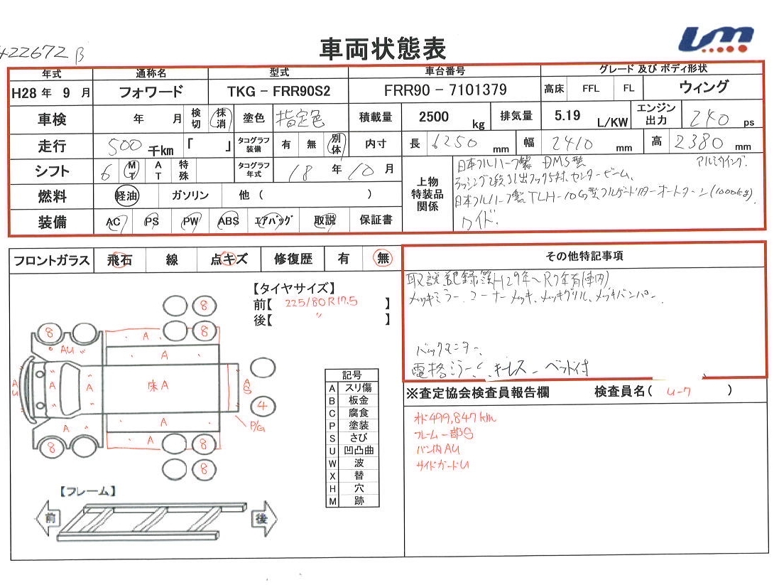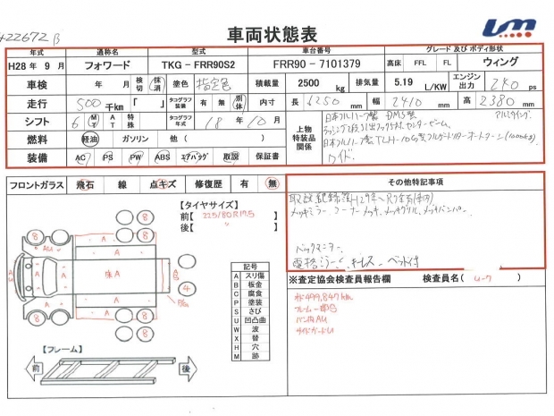 | 車台番号 | FRR90-7101379 | 馬力 | 240 PS | ||||||||||||||||||||||||||||||||||||||||||||