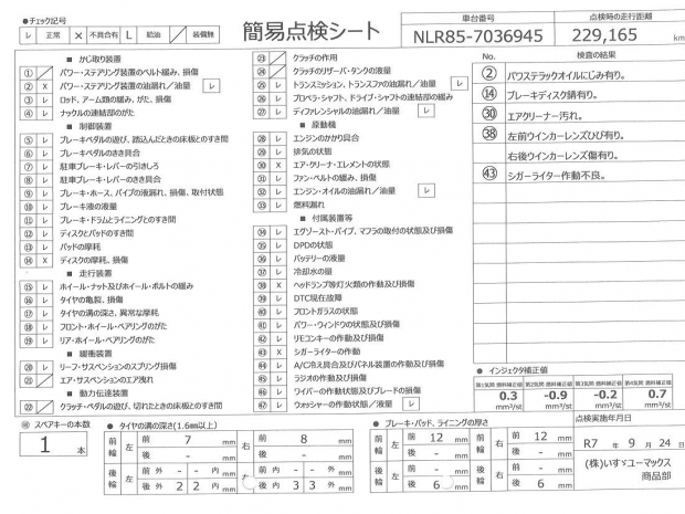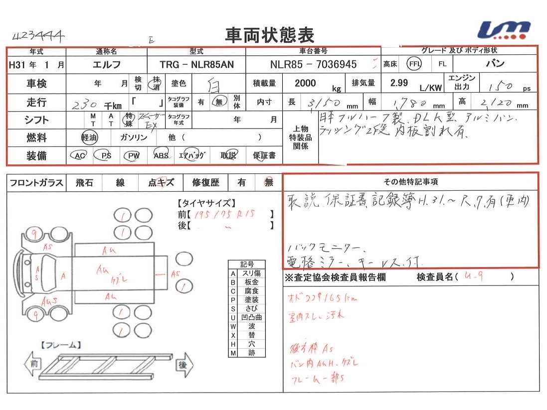 | 車台番号 | NLR85-7036945 | 馬力 | 150 PS | ||||||||||||||||||||||||||||||||||||||||||||