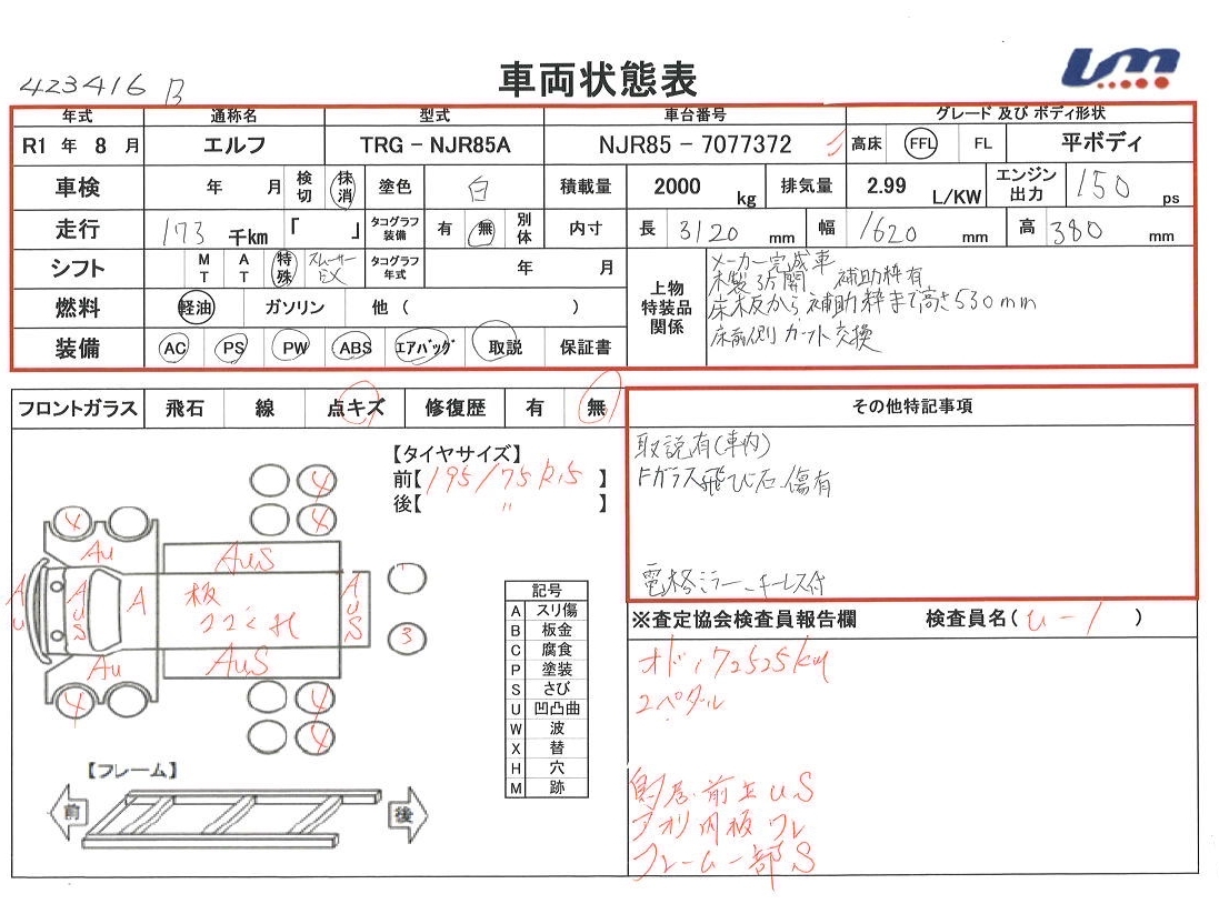 | 車台番号 | NJR85-7077372 | 馬力 | 150 PS | ||||||||||||||||||||||||||||||||||||||||||||