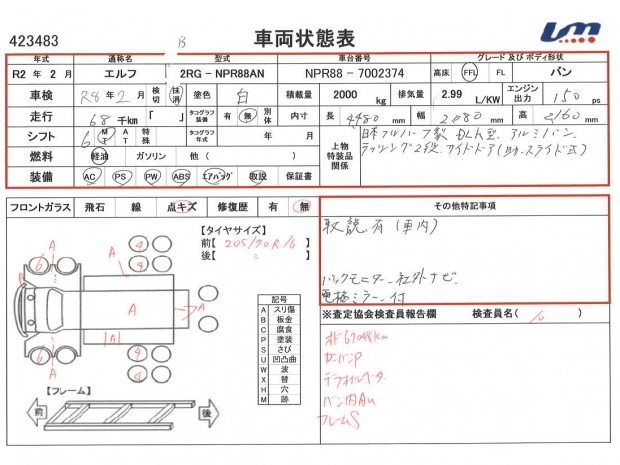 | 車台番号 | NPR88-7002374 | 馬力 | 150 PS | ||||||||||||||||||||||||||||||||||||||||||||