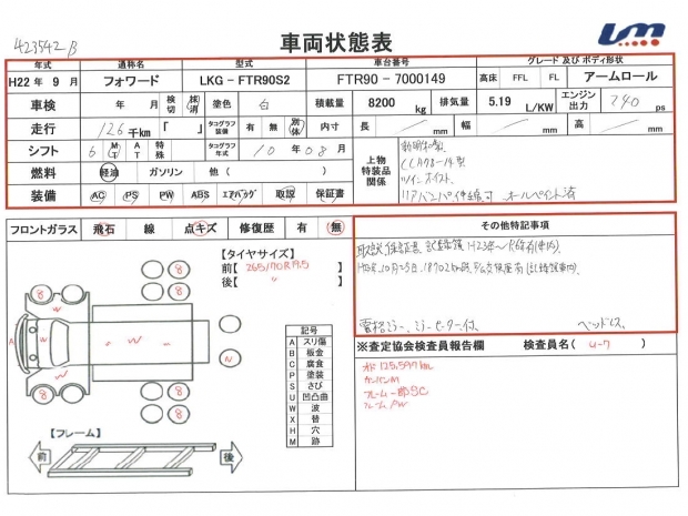 | 型式 | LKG-FTR90S2 | エンジン排気量 | 5,190 cc | ||||||||||||||||||||||||||||||||||||||||||||
