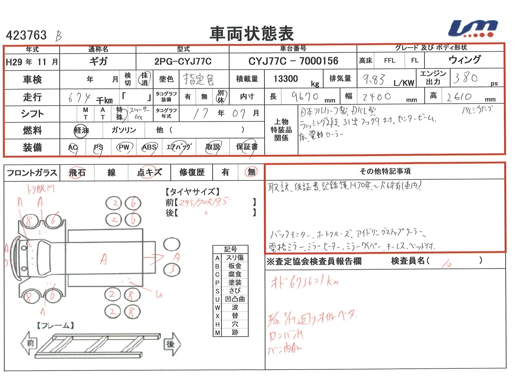 | ボディ内寸 | 荷台長 | 9,670 mm | 走行距離 | 674,000 km | |||||||||||||||||||||||||||||||||||||||||||