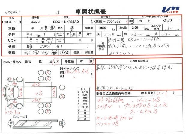 | ボディタイプ | ダンプ | 車両総重量 | 5,995 kg | ||||||||||||||||||||||||||||||||||||||||||||