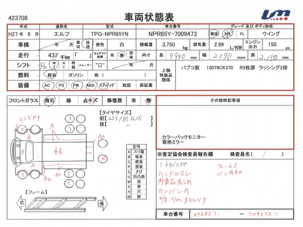 | 車台番号 | NPR85Y-7009473 | 馬力 | 150 PS | ||||||||||||||||||||||||||||||||||||||||||||