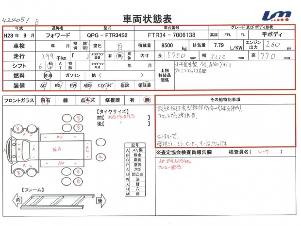 型式 | QPG-FTR34S2 | エンジン排気量 | 7,790 cc | ||||||||||||||||||||||||||||||||||||||||||||
