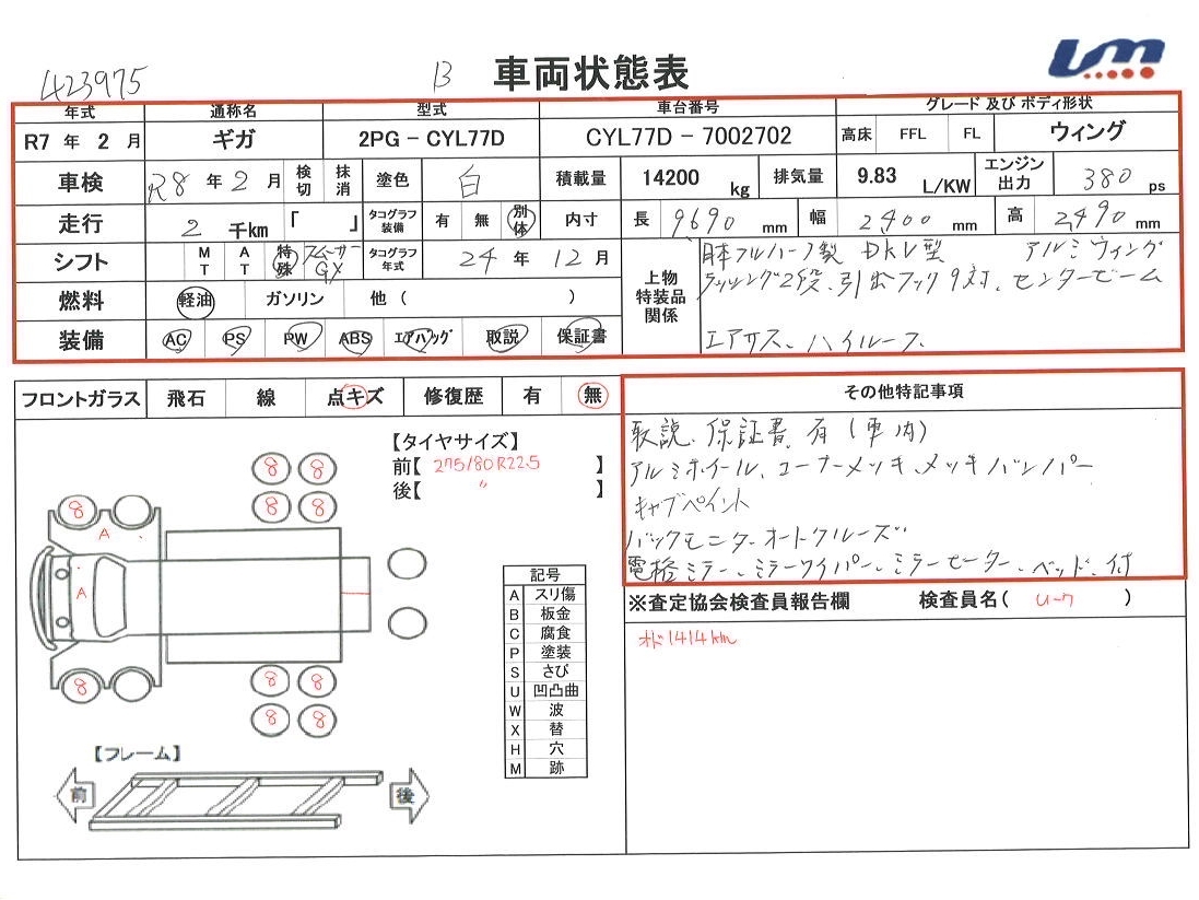 | 車台番号 | CYL77D-7002702 | 馬力 | 380 PS | ||||||||||||||||||||||||||||||||||||||||||||
