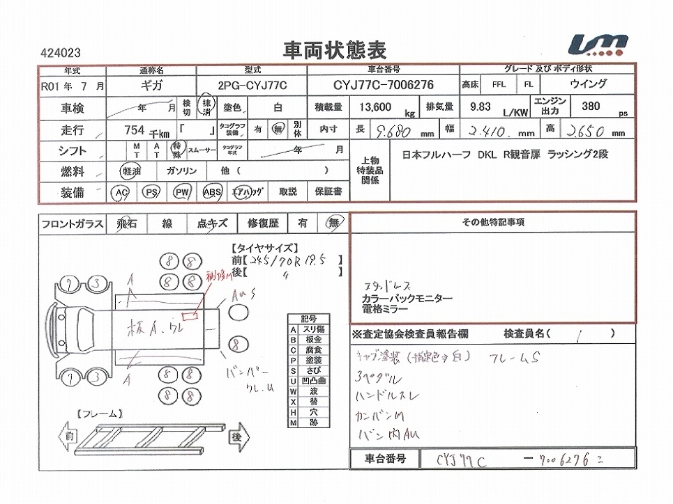 | 車台番号 | CYJ77C-7006276 | 馬力 | 380 PS | ||||||||||||||||||||||||||||||||||||||||||||