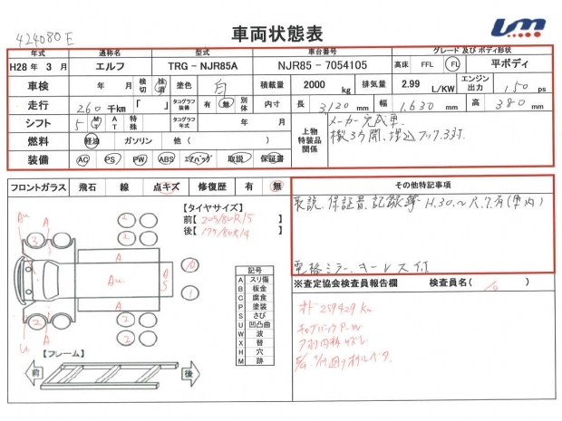 | ボディ内寸 | 荷台長 | 3,120 mm | 走行距離 | 260,000 km | |||||||||||||||||||||||||||||||||||||||||||