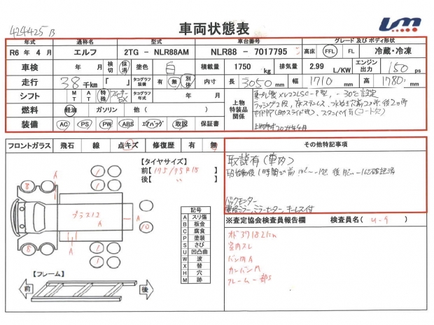 | 車台番号 | NLR88-7017795 | 馬力 | 150 PS | ||||||||||||||||||||||||||||||||||||||||||||