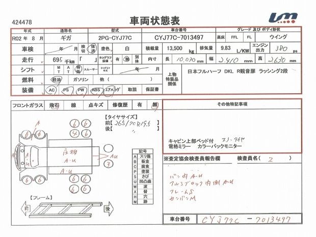 | 車台番号 | CYJ77C-7013497 | 馬力 | 380 PS | ||||||||||||||||||||||||||||||||||||||||||||