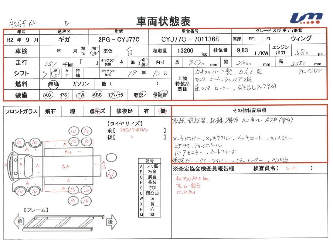 | ボディ内寸 | 荷台長 | 9,670 mm | 走行距離 | 251,000 km | |||||||||||||||||||||||||||||||||||||||||||