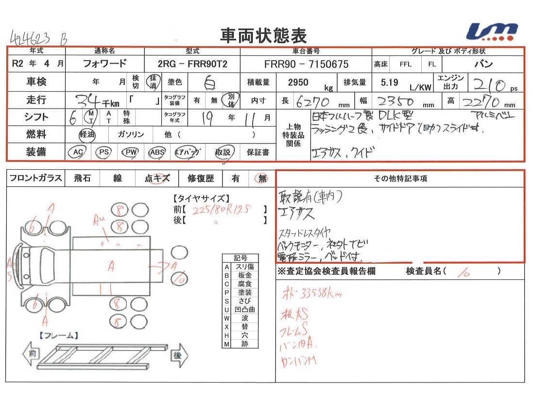 | 車台番号 | FRR90-7150675 | 馬力 | 210 PS | ||||||||||||||||||||||||||||||||||||||||||||