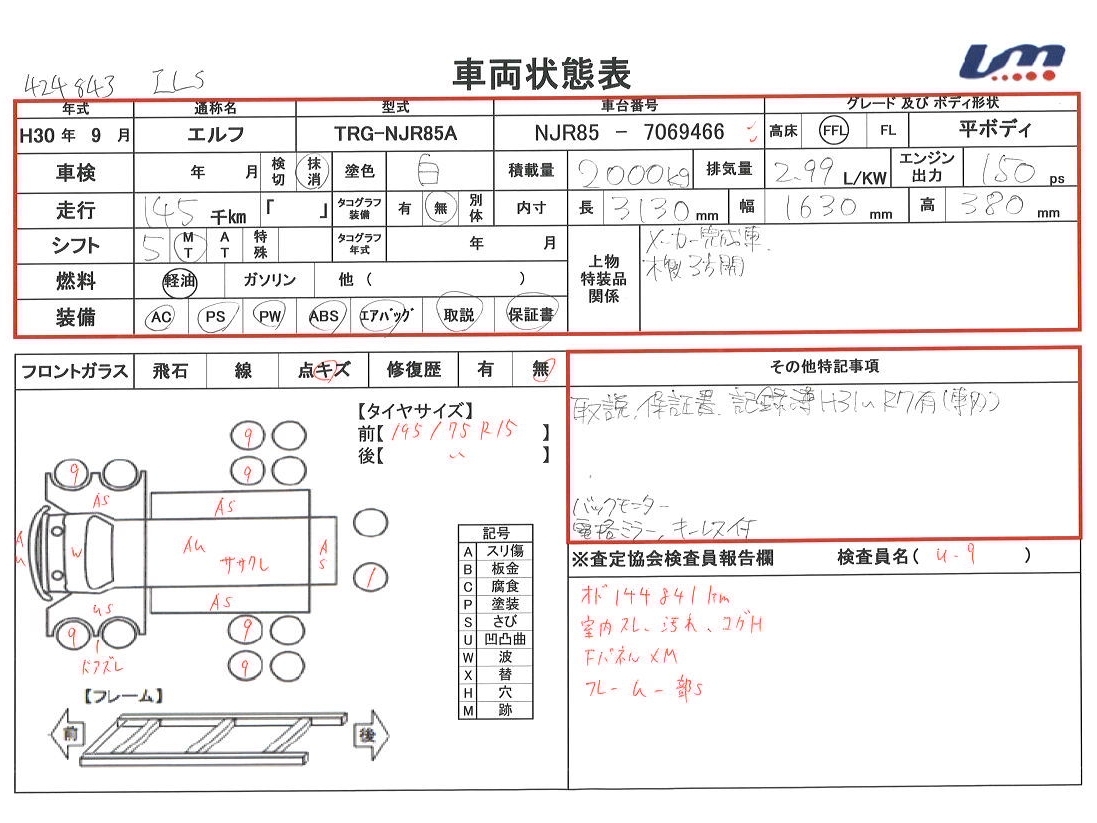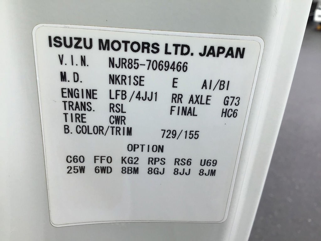 | 車台番号 | NJR85-7069466 | 馬力 | 150 PS | ||||||||||||||||||||||||||||||||||||||||||||