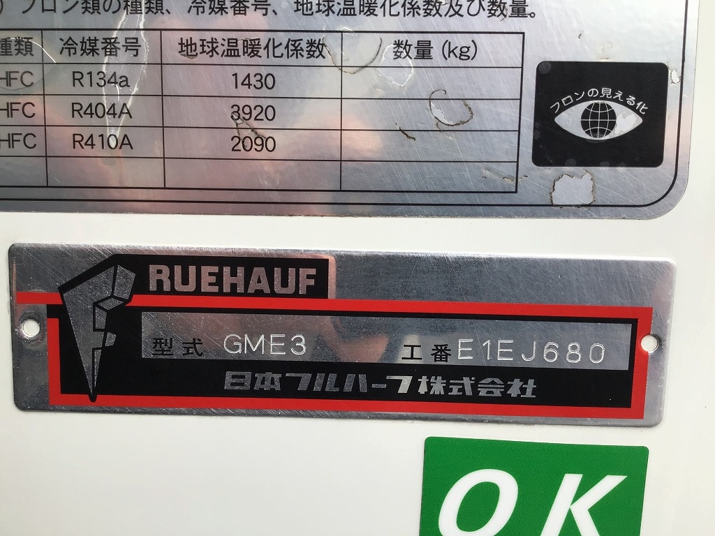 | 車両情報コメント | デンソー製CG921W型 -7.0℃設定 ラッシング2段 水抜き穴前2ヶ所 床ステンレス リア3枚観音扉 サイドドア(助、スライド式) 日本フルハーフ製GME3型 取説・保証書・記録簿R1年~R7年有(車内)E/G始動後1時間で前13.5℃~5℃後12℃~-0.5℃確認済 Dシート破れ有 積載量は抹消時情報になります。他写真多数有り、詳細はお問い合わせ下さい。【タイヤサイズ195/85R16】 | ||||||||||||||||||||||||||||||||||||||||||||||