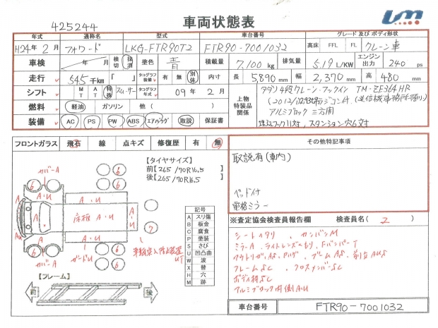 | 車台番号 | FTR90-7001032 | 馬力 | 240 PS | ||||||||||||||||||||||||||||||||||||||||||||