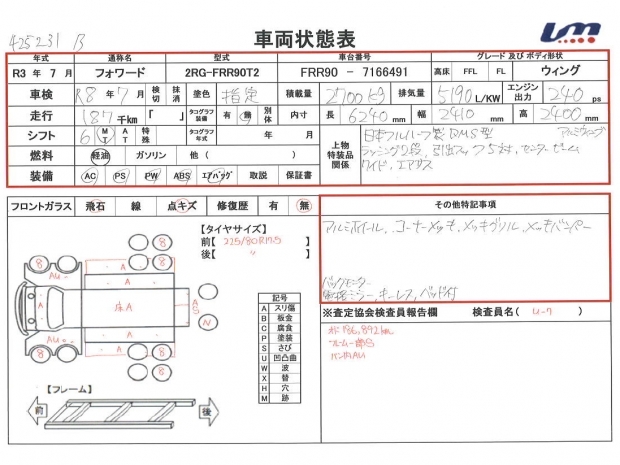 車台番号 FRR90-7166491 馬力 240 PS