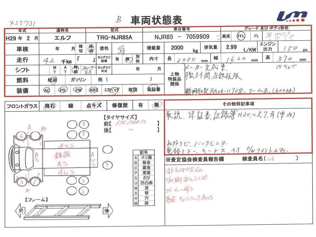 | ボディ内寸 | 荷台長 | 2,030 mm | 走行距離 | 42,000 km | |||||||||||||||||||||||||||||||||||||||||||